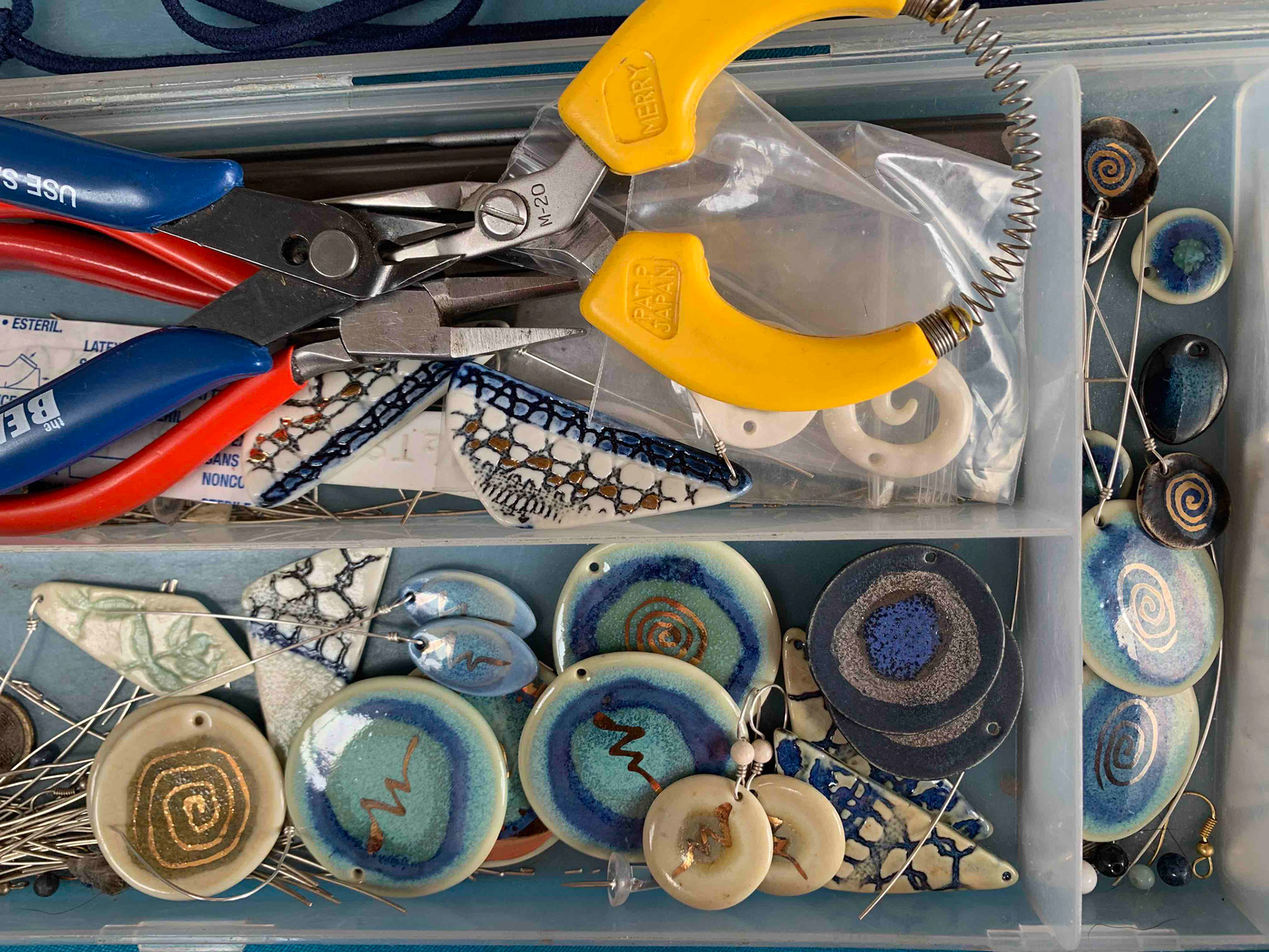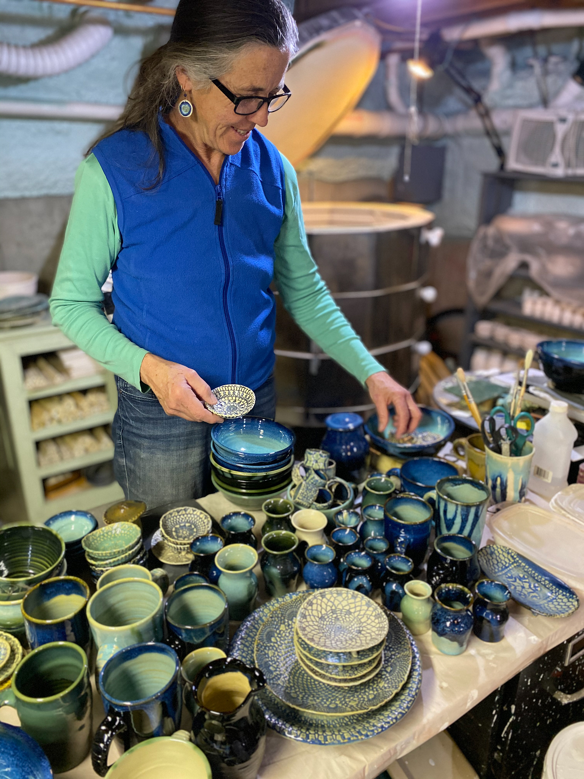 I love using my hands and working with a variety of materials for creative expression. I have been working with clay for over 50 years and enjoy transforming it into a variety of shapes that become sometimes decorative, whimsical but almost always functional. It is a delight to mold clay into just about anything imaginable. Each ceramic piece is completely handmade by me; the forms are precious to hold and finished with a wide palette of my own glazes. My unique porcelain jewelry undergoes multiple steps before completion and is comfortable and enjoyable to wear.